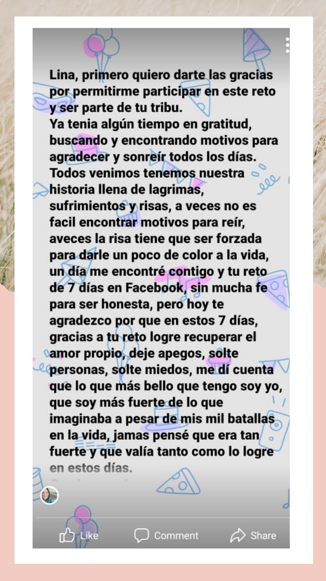 ✓Aprendió a agradecer incluso los momentos de dificultad.